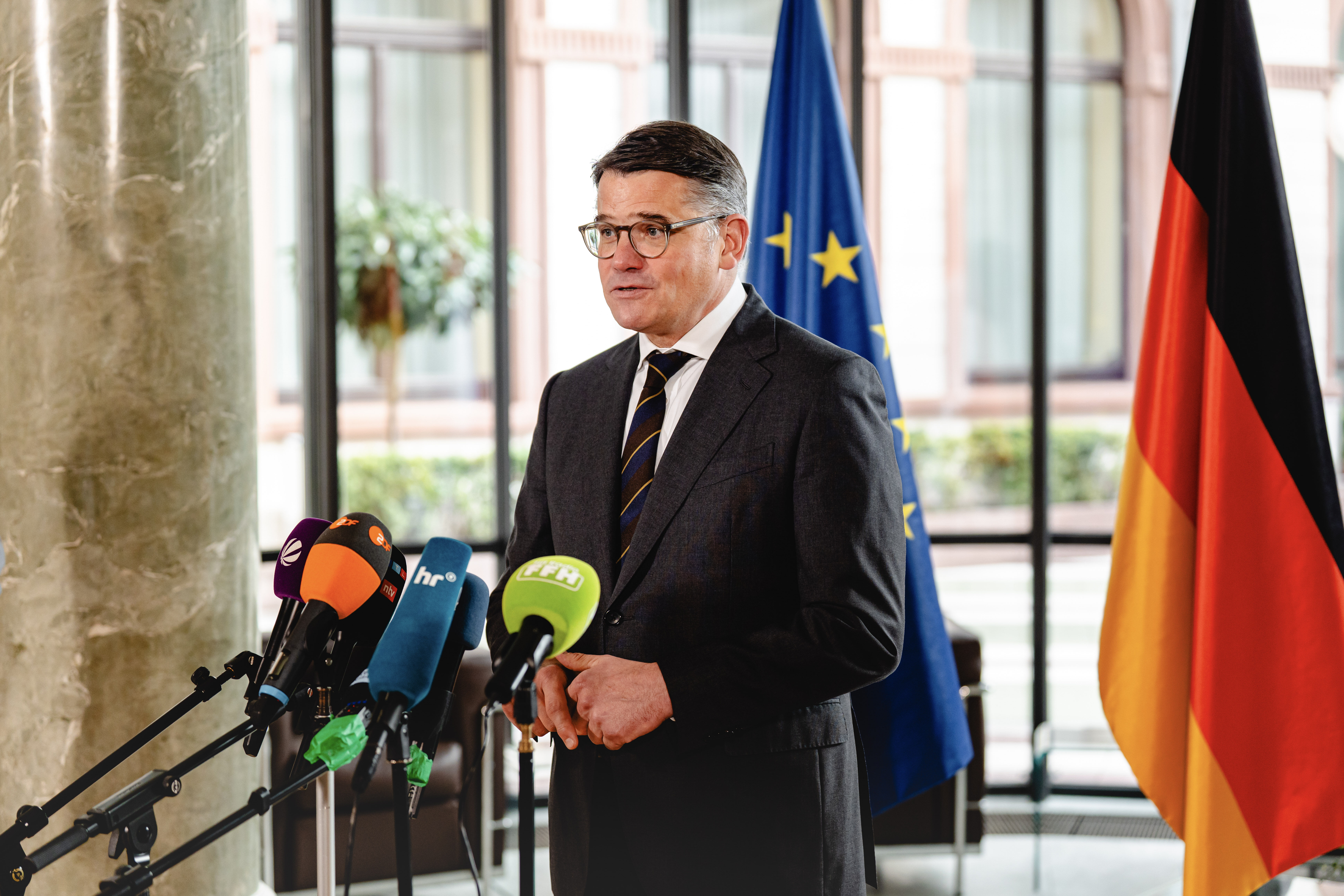 Unter Leitung von Ministerpräsident Rhein haben sich am Donnerstag, 25. September 2025, zum zweiten Mal Mitglieder der Landesregierung mit führenden Vertreterinnen und Vertretern der Finanzbranche in Frankfurt getroffen, um eine gemeinsame Finanzplatzstrategie zu verabschieden. Das Gremium aus Politik und Wirtschaft will die Wettbewerbsfähigkeit Frankfurts im globalen Finanzwesen stärken.